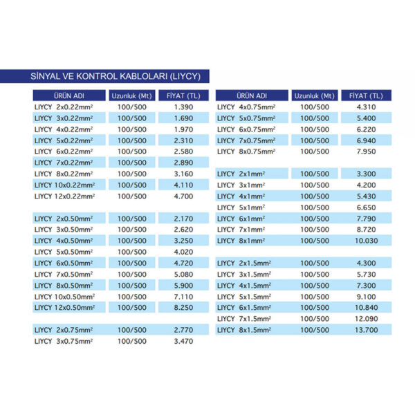 كن أول من يقيم “LIYCY – Sinyal ve Kontrol Kabloları”